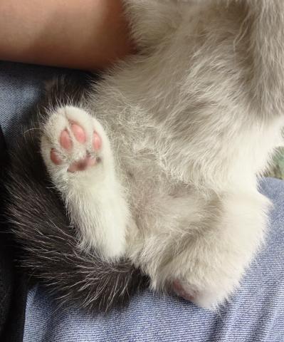 | 募集の経緯 | 生まれた時にへその緒が絡んでしまい左後足欠損のため里親となりました。 3枚目に後足の写真あり |